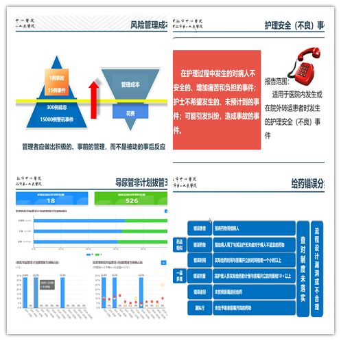 首先,侯主任从不良事件上报例数、类型、定性、高发因素等进行分类汇总,结合护理敏感指标全面解读本季度护理质量与安全中存在的问题,并找出问题的症结所在,详尽地分析了发生概率较高、风险较大的护理安全不良事件类型,并明确提出整改意见和要求。接着,侯主任从护理不良事件发生的危害性及护理不良事件的上报程序、上报流程、影响上报的因素和护理不良事件的防范对策等方面做了全面培训。在典型不良事件分析中,侯主任围绕案例的发生经过、原因分析及后期的整改情况,分别从科室及医院层面深入剖析了事件发生的潜在因素,要求在质量持续改进中要着眼主要问题,合理应用管理工具分析、查找、总结、整改、追踪,严格落实核心制度,预防不良事件的发生。最后,侯主任明确指出:报告不良事件是为了避免差错的再次发生,没有分析、总结反馈和改进,不良事件上报就失去了意义!