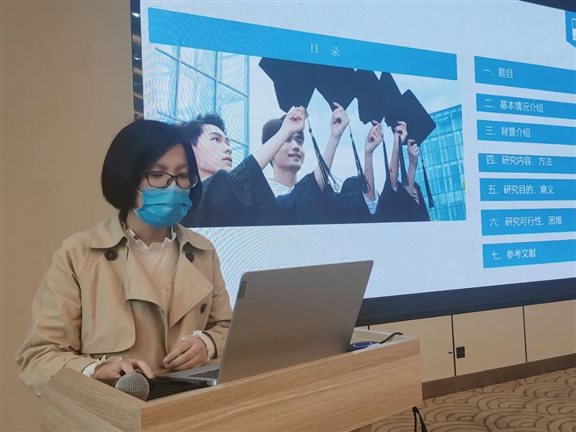 本次开题共有10名成员进行汇报,大家分别就课题的研究背景、国内外研究现状、研究目的、研究方法、预期结果及参考文献在内的六个方面进行阐述,王浩然博士逐一进行点评。
