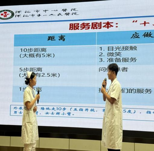 主管实习生管理工作的护理部副主任刘素红带来《实习生岗前培训须知》和《护士礼仪及沟通技巧培训》,通过理论讲解与实际演示,帮助实习生们掌握良好的沟通方法和职业礼仪,为日后与患者及同事的有效沟通做好准备。