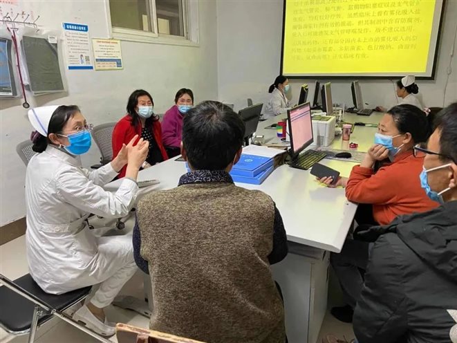 2021年2月19日下午5点,在呼吸与危重症一病区医生办公室,每月一次的公休座谈会如期举行。因疫情防控要求,本次仅召集8名患者及家属参加了此次座谈会,主要目的是倾听患者的心声与需求、提高医护质量和患者满意度、排查护理工作中的不足,同时对患者进行雾化吸入法及呼吸科常见疾病的健康宣教。