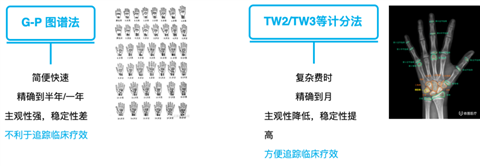 一般来说,有两种判断骨龄方法。分别为G-P图谱法,TW2-TW3计分法。两种方法各具优势和缺点。目前我国临床应用最广泛的GP图谱法简单快速。