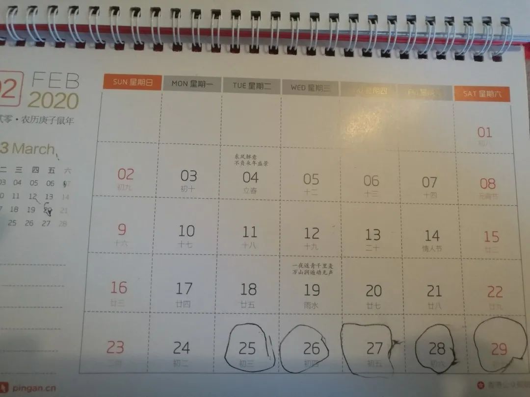 妈妈,您说有一个月可能就会回来,可一个月有多久我不知道。您走的那天,我在日历2月25那天画个圈,爸爸说每天画一个,等画够30个妈妈就回来了!加油,妈妈!加油,叔叔阿姨们!