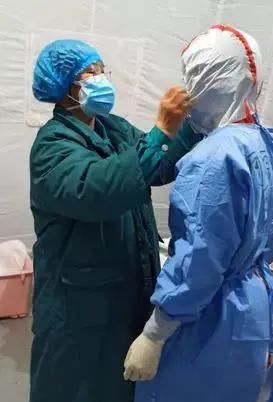 18:30:和战友们一起出征,领防护服,护目镜,帮他们一个一个检查好,确保他们的防护服都穿好了,口罩都戴好了,才放心地送他们进舱。