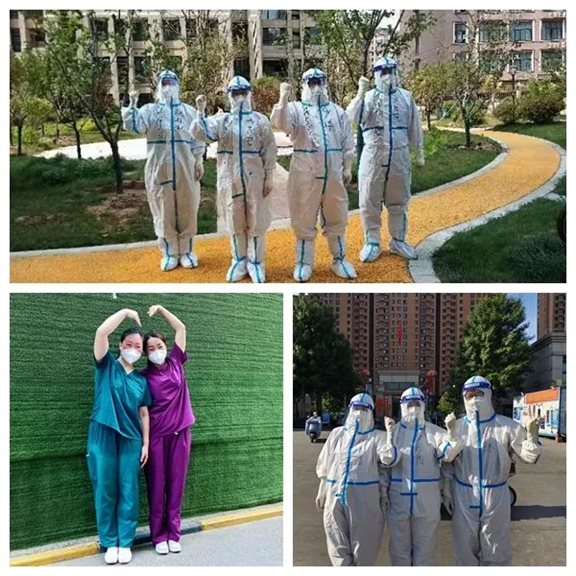 被雾气模糊的面屏,汗水浸透的头发,被压伤的额头与面颊,都不能击退我们战胜疫情的决心。烈日挡不住脚步,强风吹不散担当,低温冷不了热情。