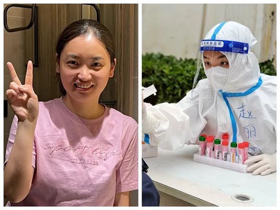 为了完成核酸采样工作,他们转战于各个小区。很多时候,她们都是直到中午13点还没有吃午饭,15分钟快速的吃完饭后,便又开始继续采样工作,就是为了确保群众们能早点完成采样,不让他们排队排太久。