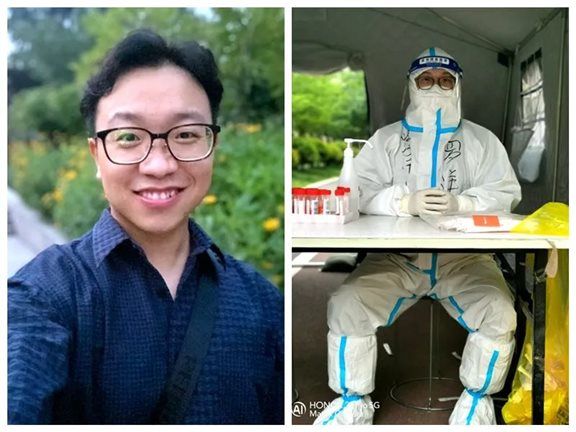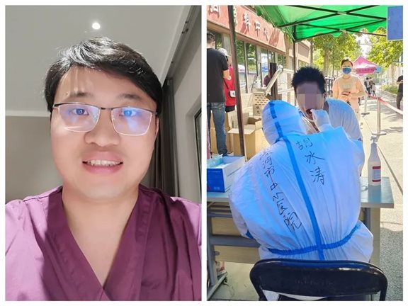 他们穿着密不透气的防护服,为了不去厕所,尽量不喝水或者少喝水,他们每采一位居民,就需要做一次手部消毒,不断升高的气温使防护服内充满了汗水,等到脱下防护服的时候,衣服已经被汗水浸湿。