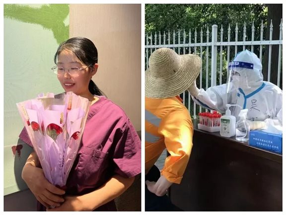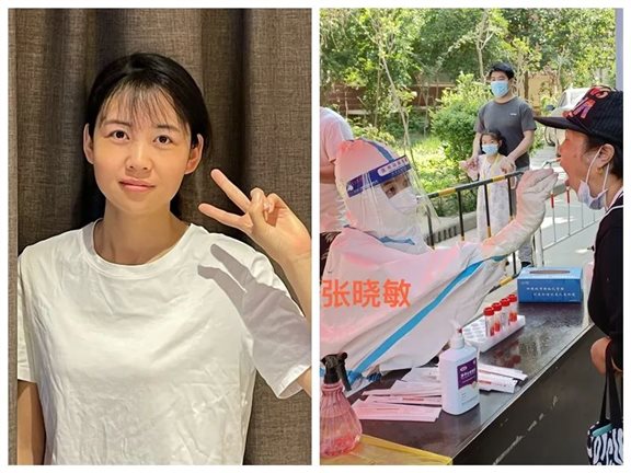 在很多采样社区,许多抗疫战士在烈日下站着采样。她们说,他们多站一会儿没关系,能让社区采样人员少站一会儿才是目的。