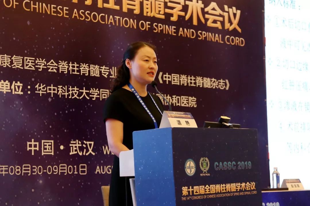 我院关节脊柱外科主管护师左晓琳以“早期颈部康复训练对微创颈前路融合术的影响”为题在大会上作了学术报告。