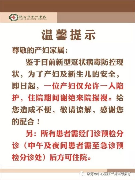 众志成城 -- 漯河市中心医院产科温馨提示