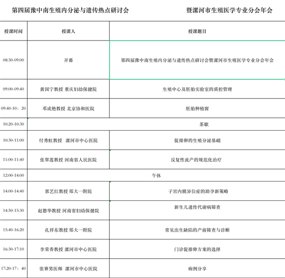为了更好的学习和掌握生殖内分泌与遗传性疾病的诊断和治疗、进一步提高豫中南地区妇产科医务人员生殖内分泌与遗传病相关的理论知识及实践诊疗技术水平,加强学术交流,市医学会决定举办“第四届豫中南生殖遗传新进展研讨会暨漯河市生殖医学专业学术年会”。