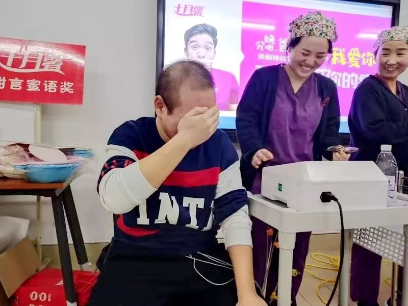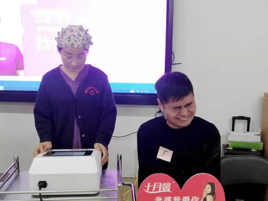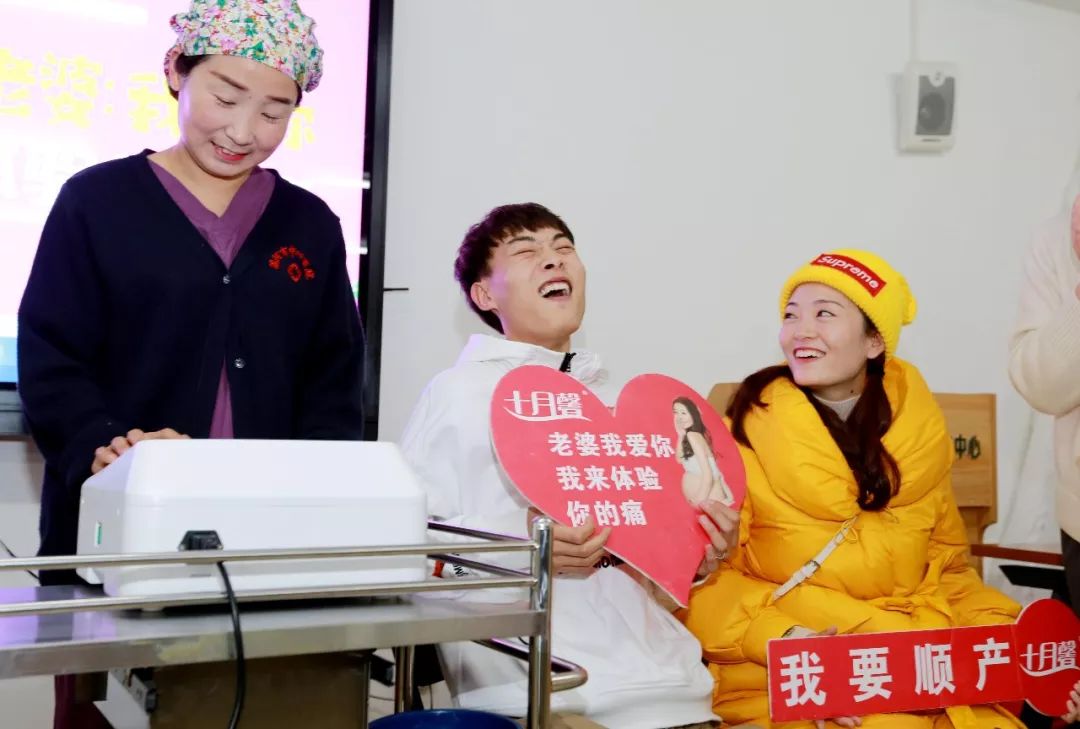 随后,勇敢的准爸爸们在准妈妈们的陪伴下体验了传说中的“十二级宫缩疼痛”,活动场景欢快温馨。有的准爸爸痛的直呼“不生啦”;有的准爸爸则频频向妻子甜蜜告白,深深感知准妈妈的辛苦和不易。通过这样的体验,让准爸爸们在等待宝宝的到来的同时,也增添了对准妈妈们的体贴和理解。