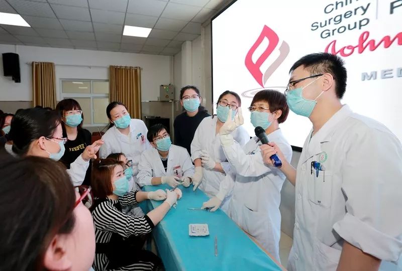 随后,崔利娜以动物标本进行了现场缝合示范,分步讲解每一步缝合技巧,手把手“一对一”带教。