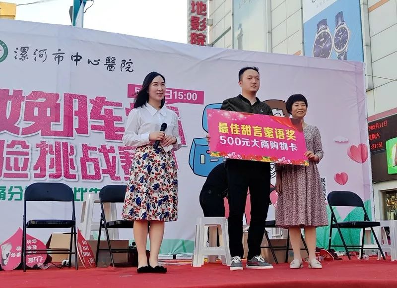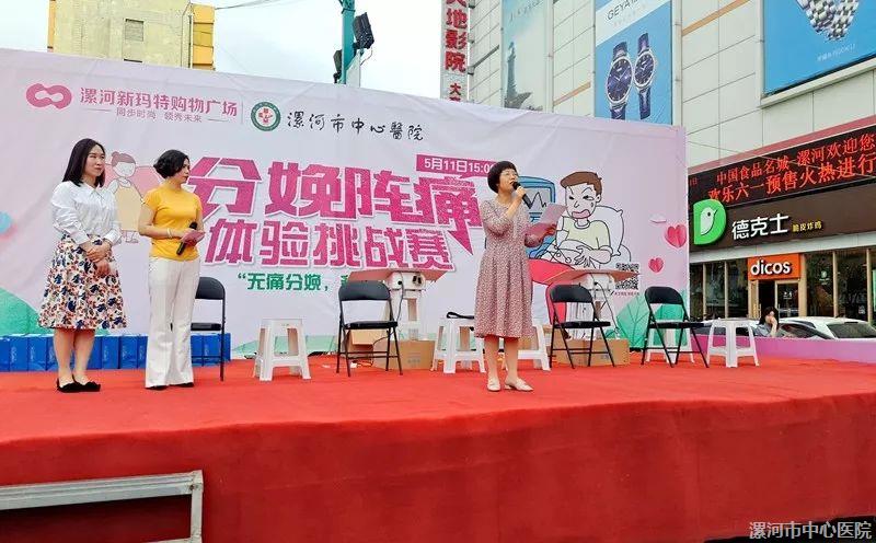 为了进一步加深大家对镇痛分娩的理解,切身体会当母亲的不易,从而增加夫妻间的关爱,营造和谐美满的家庭。5月11日下午,由漯河市中心医院(漯河医专一附院)联合大商新玛特主办的“分娩阵痛体验挑战赛”在新玛特东广场举行。产科主任崔利娜、副主任徐静出席活动现场,活动吸引了300余名市民前来观看。