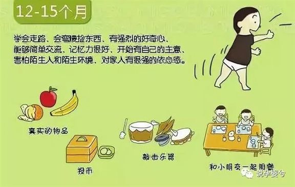 学会走路了,能够弯腰捡东西,对周围有强烈的好奇心,能够进行简单的交流。