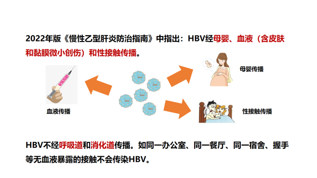 乙型肝炎病毒(hepatitis B virus,HBV)感染仍然是全球重大的公共卫生问题。2019年HBV感染导致全球范围内约82万人死亡。2019年世界卫生组织估计有2.96亿人患慢性乙型肝炎,而HBV感染者的确诊率仅为10%,且仅约2%感染者接受治疗。这一现状距离WHO制定的2030年消除病毒性肝炎危害的目标相去甚远。我广大人群需要乙型肝炎病毒的传播途径,以便更好的预防和阻断HBV的感染,减少新发感染者,减少对慢乙肝患者的歧视和污名化。