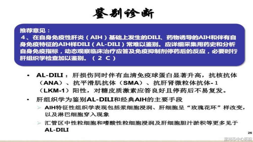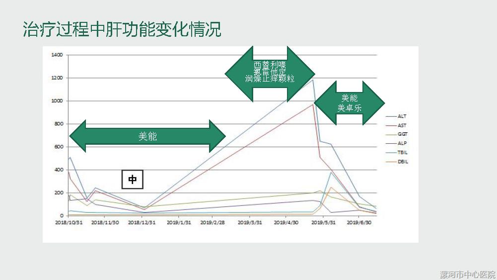 一位年轻女性患者于2018年-2019年间间断因为肝功能异常入院,该患者曾经因皮肤病较长时间服用中成药物治疗,入院后经过询问病史及检查,初步诊断药物性肝损伤,停用该药物并给予保肝治疗,但治疗中发现转氨酶下降不理想,治疗中进一步检查发现患者免疫球蛋白较高,且抗核抗体较高,不排除自身免疫性肝炎存在,建议患者进行肝穿刺活检,最终患者完成肝穿刺活检术,活检病理提示自身免疫性肝炎可能,加用激素治疗后患者肝功能明显好转,后建议加用免疫抑制剂减少激素应用,出院后定期复查,患者一般情况稳定。
