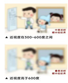 一般来说,近视可分为轻度近视(≤300度)、中度近视(300-600度之间)、高度近视(600度以上)。高度近视的病因尚不十分明确,目前认为与遗传及环境有关。高度近视眼的遗传因素目前已较为确定,即如果父母有高度近视的话,孩子发生高度近视的可能性大大增加,但这也不代表孩子一定会发生高度近视。环境因素是指学龄儿童长期近距离阅读学习、电子产品过度使用、或所处环境光线差、接受自然光线时间少等等都会造成并加重近视发展。