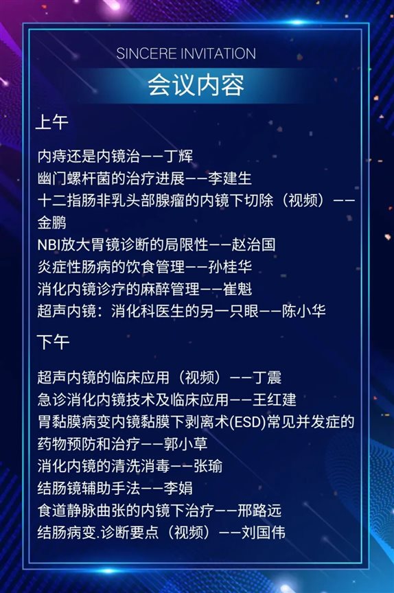 为更好学习和掌握消化系统疾病及消化内镜诊断、治疗方面的前沿性理论,进一步提高全市消化内科专业医务人员的临床诊治水平,加强学术交流,现决定举办“2021消化内科专业年会暨内镜诊疗培训班”,会议期间将邀请国内知名专家教授亲临授课。