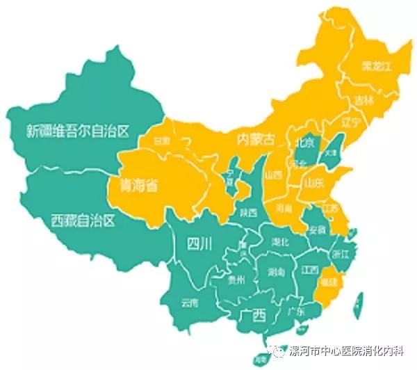 1.胃癌高发地区人群(下图黄色区域省份)