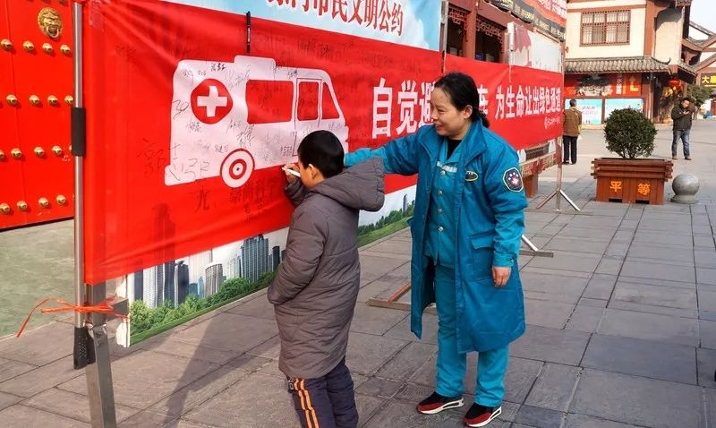 随后,医护人员还对现场市民进行了“为生命护航为健康保障”的倡议,市民们纷纷在“自觉避让救护车,为生命让出绿色通道”倡议条幅上签字。