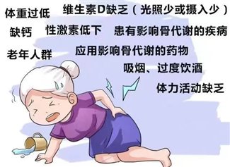 ②影响骨代谢的疾病:例如:糖尿病、甲状腺功能亢进、系统性红斑狼疮等内分泌及免疫性疾病等多种疾病,均是导致骨质疏松的高危因素,需引起重视。