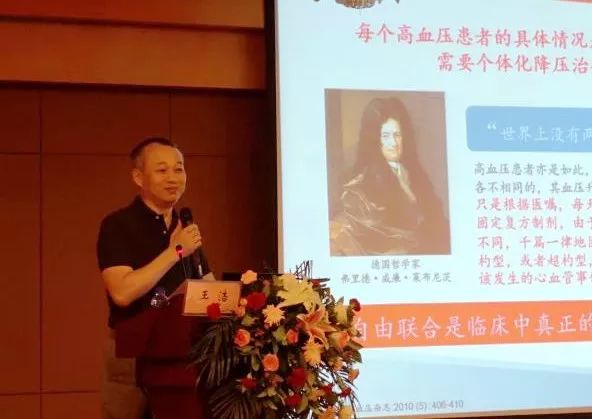 王浩教授以“自由联合,量体裁衣--个体化降压治疗 更多获益”为主题,向大家详细讲解了联合治疗在高血压治疗的重要地位。王浩教授还介绍了世界卫生组织HEARTS项目及河南省高血压防治中心近期的工作,并对漯河市高血压防治中心多年来取得的工作表示肯定。