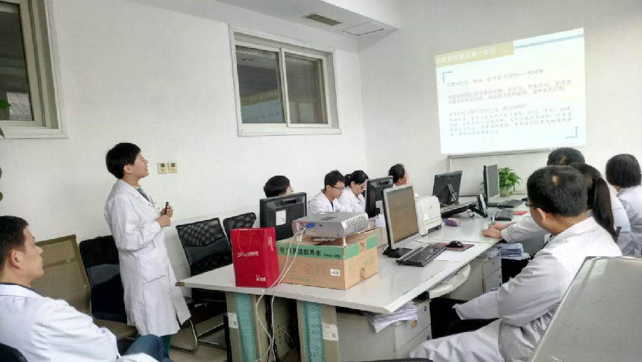 为了更好的进行住院医师规范化培训日常教学工作,3月14日,高血压科特邀刚进修学习归来的消化科沈洁老师讲授关于教学查房知识。