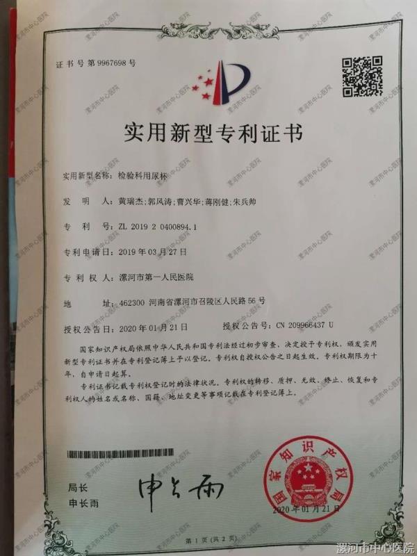 您的位置 :首页 > 科室导航 > 医技科室 > 医学检验科 > 科室成就 > 专利专著