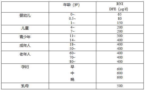 这样,当叶酸补充剂与食物之间叶酸混合食用时,应以DFE计算平均需要量(EAR),然后再根据EAR×1.2确定推荐摄入量(RNI)。