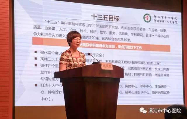 杨秀慧首先从重点学科建设、人才梯度、医院荣誉等方面简单介绍了医院的基本情况。然后从加强组织领导、加大宣传力度、降低医疗费用、落实分级诊疗制度、深化人事薪酬改革、保障药品耗材供应、落实医保制度、转变管理理念、加强信息化建设、方便群众就医等方面交流了漯河市中心医院在深化医改方面的推进措施。同时,重点分享了医院在取消药品加成后改革绩效管理、柔性引进人才、整合信息资源及系统平台建设、优化就医流程及环境、提升临床服务能力等亮点工作。