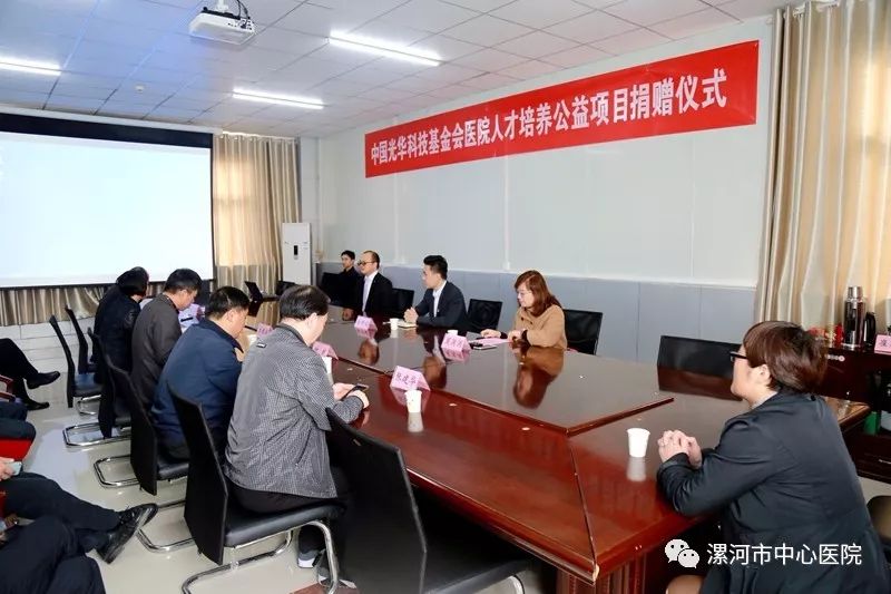 为加快医院青年药师的成长步伐,推动医院药学学科稳步快速发展,11月14日上午,中国光华科技基金会漯河市中心医院青年药师人才培养公益项目捐助仪式在医院第一会议室举行,副院长李耀军,中国光华科技基金会医学事业中心主任张轩铭,正大天晴药业集团股份有限公司河南大区经理周润润、豫中南区域经理李文博出席仪式,医院药学部、人力资源部、财务科等科室及药学部部分青年药师参加了捐助仪式。