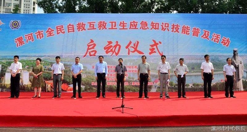 为深入贯彻落实国家卫生健康委员会和河南省卫生计生委关于卫生应急文化建设的相关要求,提升全市公民健康素养,增强自救互救能力,营造良好的舆论氛围和社会环境,助力健康漯河建设,6月15日上午,由漯河市卫计委、漯河医专、共青团漯河市委、漯河市应急办联合主办,我院承办的漯河市全民自救互救卫生应急知识技能普及活动启动仪式在漯河医学高等专科学校举行。省卫计委应急办主任吴建峰,市政府办公室调研员徐长来,漯河医专校长赵志军,市卫计委党组书记、主任吴书清,团市委书记王磊,漯河医专副校长王福清,我院副院长李耀军等出席启动仪式。来自漯河医专的大学生、社会志愿者及全市各医疗机构工作人员1000余人参加活动。