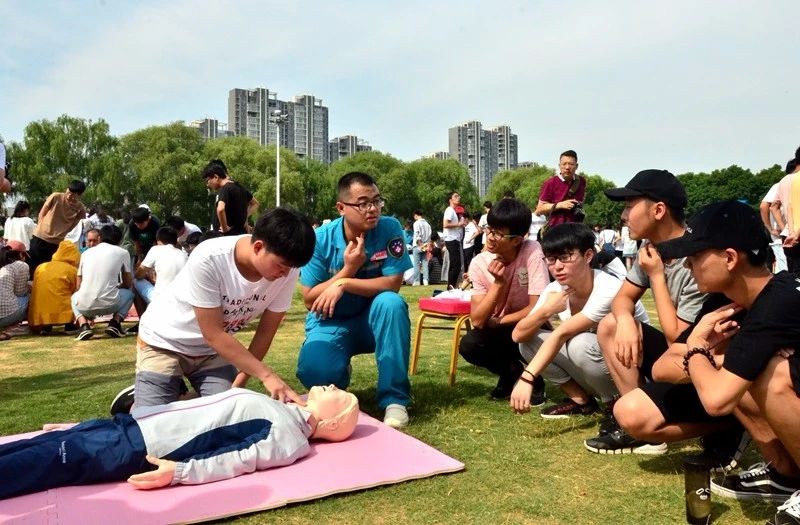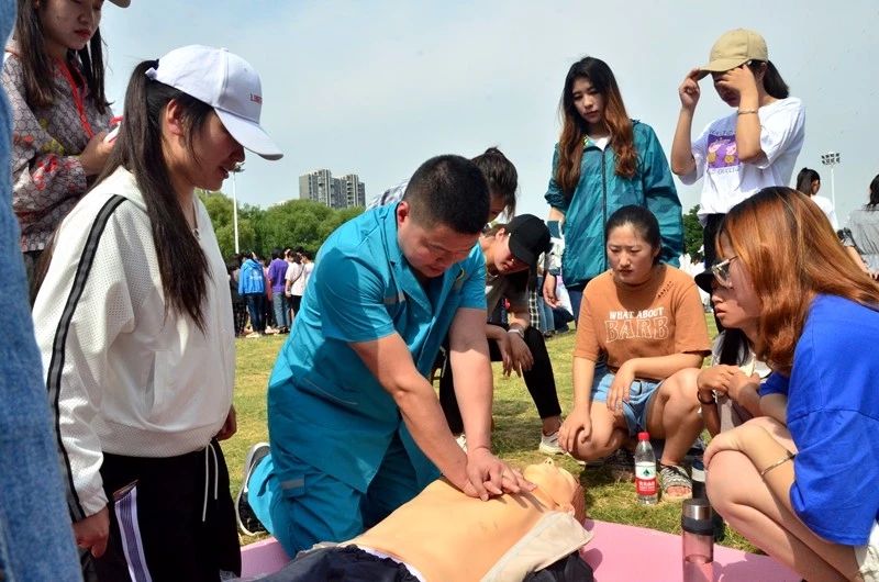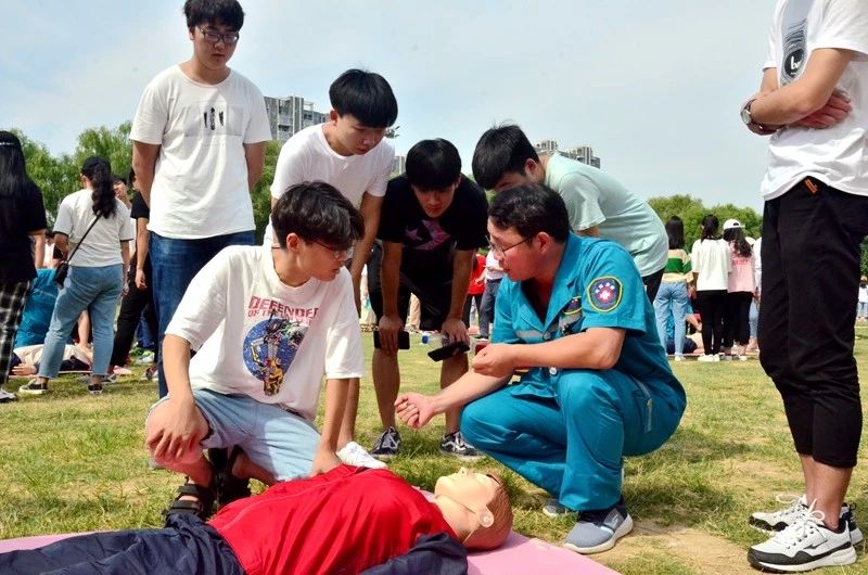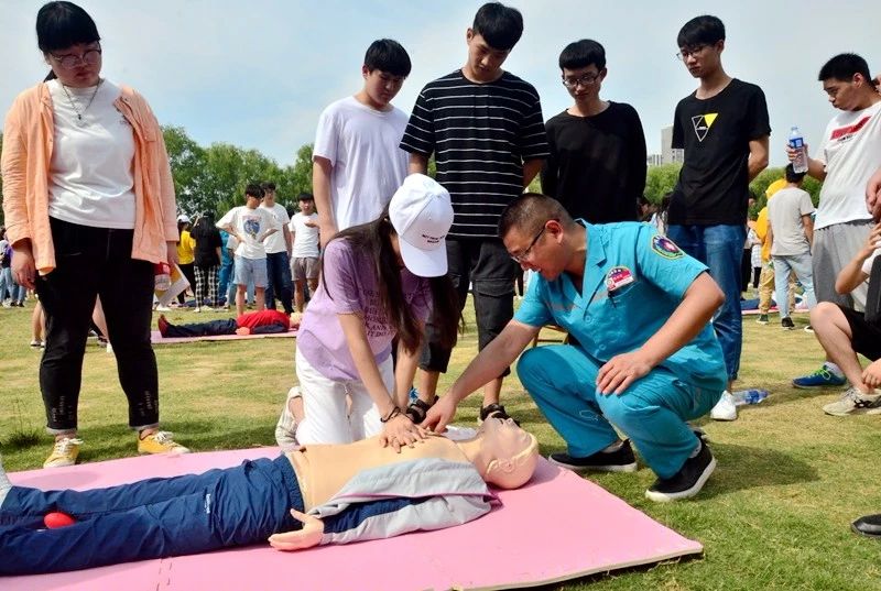 活动现场,我院急救专家团队对心肺复苏、气道阻塞、创伤止血包扎等3个常用急救项目进行了演示培训,通过演示教学、现场观摩、互动实操等引导在校学生和社会志愿者参与互动学习。