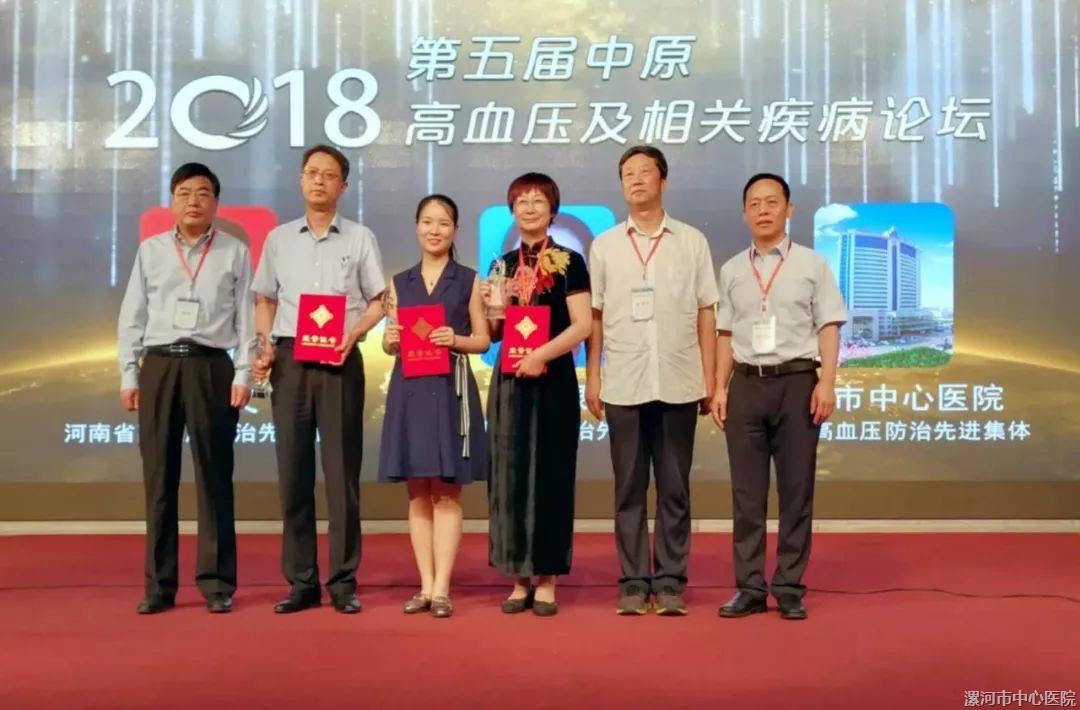 我院高血压科自2007年成立以来,在全市乃至全省高血压基层防治中做了大量的工作,在全省高血压的基层防治工作中成绩突出。在本次论坛颁奖仪式上,副院长杨秀慧登台领奖,医院被河南省卫计委、河南省高血压防治中心评为“河南省高血压防治先进集体”。河南省高血压防治中心主任王浩教授在省中心工作总结会议中说到,漯河市中心医院高血压科在副院长杨秀慧的带领下,下沉基层,辛勤付出,对我省高血压的基层防治工作做了突出的贡献!颁奖仪式后,我院高血压科团队表示:在以后的工作中,将在副院长杨秀慧的带领下继续努力工作,砥砺前行,不负厚望,再创佳绩!