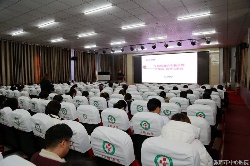 培训分为反腐倡廉和宪法宣教两部分内容,彭国全主任首先通过大量鲜活生动的案例,全面介绍了十八大以来的反腐趋势,系统阐述了医疗卫生行业常见职务犯罪的种类以及腐败高发的主客观原因,深入剖析了腐败对个人、对单位、对社会的严重危害。在反腐倡廉部分的培训结束后,彭国全主任又引经据典,对宪法和监察法的历史沿革、2018年宪法修正案六大重点内容进行了深入解读,使全院职工系统领会到了宪法精神以及宪法修改的重要意义。