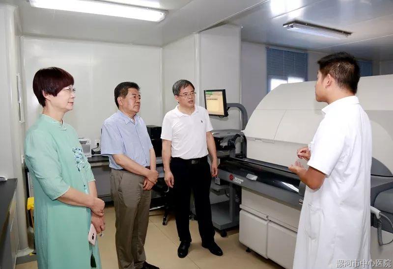 在王海蛟、杨秀慧的陪同下,王希萌先后来到医院生殖医学与遗传中心,分子实验室等地考察交流。王希萌表示,漯河市中心医院建院已超过百年,百年名院,实至名归。医院在人才、科研和学术交流方面取得了显著成效。今天参观的实验室拥有国际一流的设备,为实验和临床研究奠定了良好基础,美国华人专家会将根据医院的需求,发挥自身优势,重点在人才交流、学术交流和科研项目合作等方面加强对医院的宣传推介,促进中美医疗科研机构的深度合作。