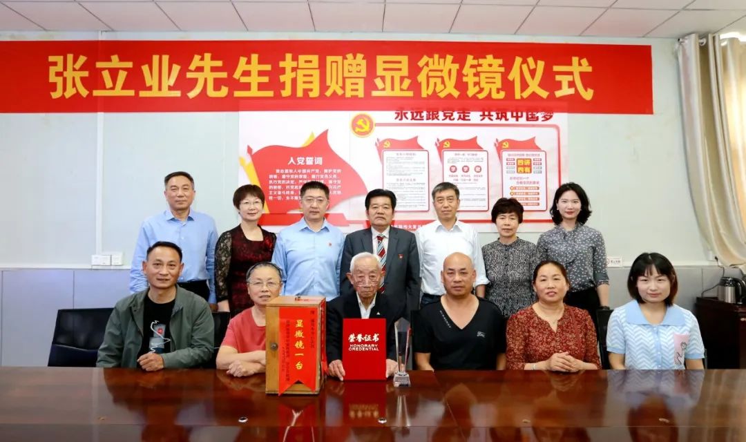 据了解,张立业先生在20世纪30年代在漯河市中心医院的前身(善济医院)工作,跟随贝光慈院长、聂德礼院长学习医术,与曹森元、黄子克、白彦章等前辈共事,救死扶伤。如今,虽已百岁高龄,却依然心系医院发展,得知医院将建立院史馆,不辞辛苦,专程来到医院捐赠了此台见证历史的显微镜。
