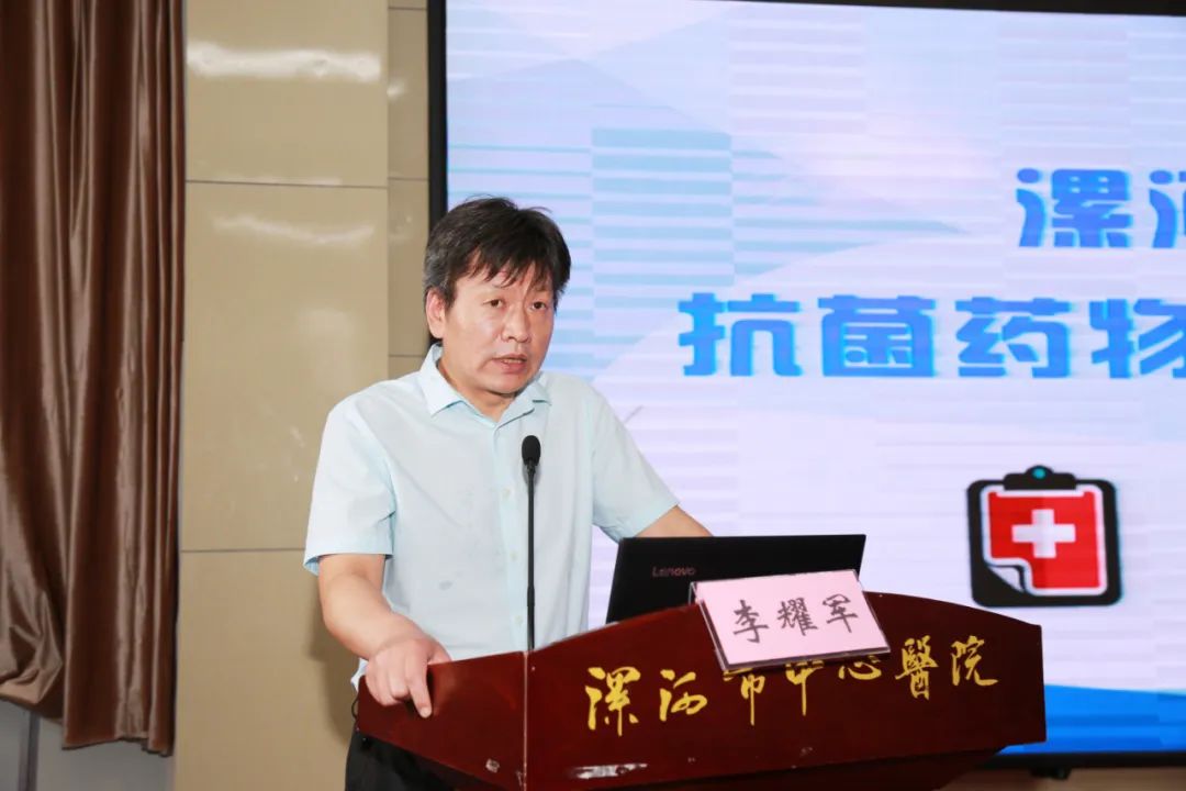 为深入贯彻落实《国家卫生健康委办公厅关于持续做好抗菌药物临床应用管理工作的通知》文件精神,提高全院医务人员抗感染诊治能力,分享抗菌药物临床应用经验成果,7月24日下午,漯河市中心医院(漯河市第一人民医院 漯河医专一附院)抗菌药物诊疗思路评比大赛在医院肿瘤楼五楼会议室举行,副院长李耀军出席比赛现场并致辞,大赛由医务科副科长窦中伟主持。
