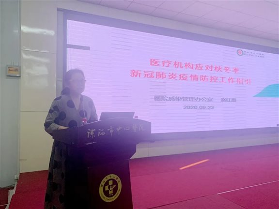 感染办主任赵红霞以《医疗机构应对秋冬季新冠肺炎疫情防控工作指引》为题,重点讲述了医院感染防控总则、医务人员个人防护指引、清洁与消毒指引、医务人员职业暴露处置指引、疑似或确诊患者死亡处置指引、重点科室新冠肺炎疫情防控工作指引,让临床工作人员明白了应该怎样做、如何做。