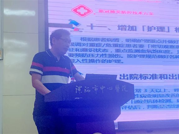 呼吸与危重症医学科一病区主任吴茱萸给大家讲解了《第八版新冠肺炎诊疗方案》,他指出了第八版诊疗方案的修订要点,并详细介绍了新冠肺炎诊疗方案(试行第八版)的内容,结合自身前期临床实战经验,给新冠肺炎的临床诊疗指明了方向。