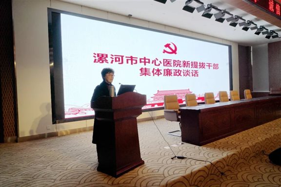 为推动医院党风廉政建设和反腐败工作的深入开展,更好的发挥中层干部的模范带头作用,12月8日下午,漯河市中心医院(漯河医专一附院 漯河市第一人民医院)在3号楼会议室召开新提拔干部集体廉政谈话会。院长王海蛟,党委书记王向良,副院长付秀虹、杨秀慧、纪委书记张丰月,副院长王进,工会主席崔红领及全院中层干部参加会议。