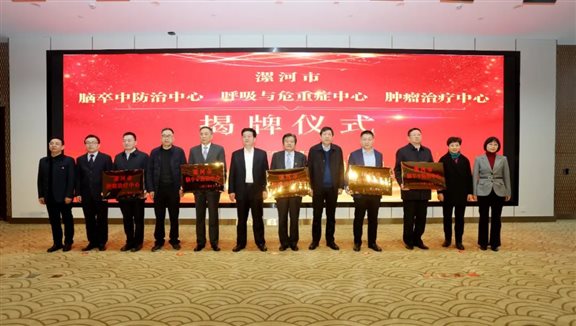 12月26日,漯河市脑卒中防治中心、呼吸与危重症中心、肿瘤治疗中心揭牌仪式在漯河市中心医院(漯河市第一人民医院 漯河医专一附院)成功举办。