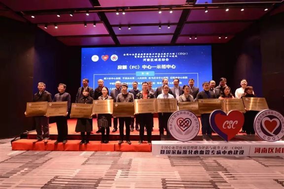会上对各示范中心及建设单位进行了授牌,漯河市中心医院被授予首批国家标准化胸痛中心示范中心、房颤中心示范中心、心衰中心示范中心及高血压中心示范中心,成为豫中南同时被授予四大示范中心的单位。