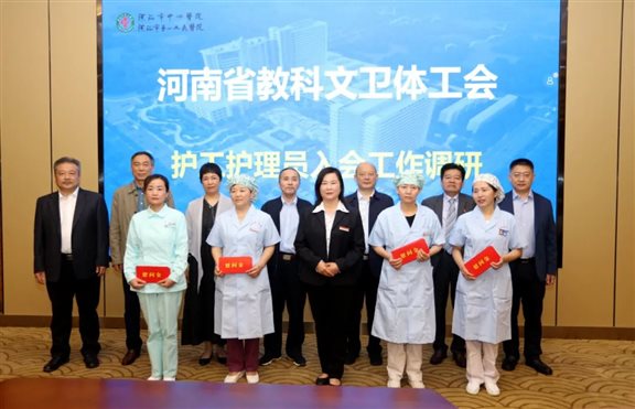 5月8日上午,河南省总工会二级调研员、省教科文卫体工会副主席郑锦顺等领导莅临漯河市中心医院,就非在编护工护理入会工作情况进行调研。市总工会党组成员、常务副主席曹鹏,党组成员、副主席叶桂娥,教科文卫体工会主任李敏、办公室主任张乐等领导莅临现场指导工作,市总工会党组成员、常务副主席曹鹏主持会议。院长王海蛟、党委书记王向良、副院长王进、工会主席崔红领陪同调研。
