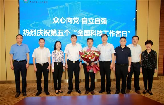 慰问中,栗社臣首先送上鲜花向以王海蛟为代表的医院一线科技工作者送上节日的祝福,并充分肯定了近些年来市中心医院在科技事业中取得的成绩。他说,近年来,市中心医院在院长王海蛟的带领下,学科建设、人才培养、科研平台建设、科研立项、科研成果等方面取得了瞩目的成绩,为漯河市科技事业的发展作出了重要贡献,充分得到了市委市政府的肯定。作为漯河市地市级医院的龙头老大,希望漯河市中心医院能够再接再厉,继续发挥先锋模范作用。