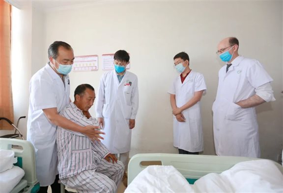 下午Dannel Porter教授又赶回病房,听取科室住院医师的患者病情汇报。随后Dannel Porter教授来到所查患者的病房,全程了解住培医师从介绍患者自身疾病相关的病史、症状体征到各项检查回报结果、诊断、鉴别和诊疗经过,最后到进行相关体格检查并汇报结果的全部流程。