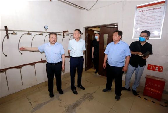 王进、崔红领一行以消防安全、用电安全、食品安全为重点,通过实地查看、现场询问等方式,对医院急救中心、影像科、医院餐厅、设备层等场所进行了重点检查。针对检查中发现的安全隐患,检查组均现场督导并协调解决,确保了安全生产不留死角、没有盲区。强调职能科室要进一步深化安全生产的检查、监督、管理,严格规范工作流程、指导细化操作规范。保卫科、总务科、物业公司要加强对重点部位的安全管理,严格把控用水用电安全、消防安全、食品安全及供氧供气安全,确保安全工作落深落细落到位。