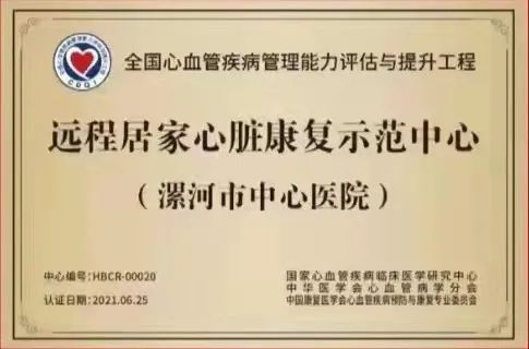 为促进我国心肺预防与康复事业发展,推动心脏康复从医院走向和基层和家庭,提高我国心血管病患者生活质量和远期预后,6月25日上午,中国心脏联盟基层居家心肺预防与康复专业委员会成立大会在北京举行。会上,漯河市中心医院(漯河市第一人民医院、漯河医专一附院)被国家心血管疾病临床医学研究中心、中华医学会心血管病学分会、中国康复医学会心血管疾病预防与康复专业委员会联合授予“全国心血管疾病管理能力评估与提升工程(CDQI)远程居家心脏康复示范中心”称号,成为全国首批20家获此殊荣的单位之一。
