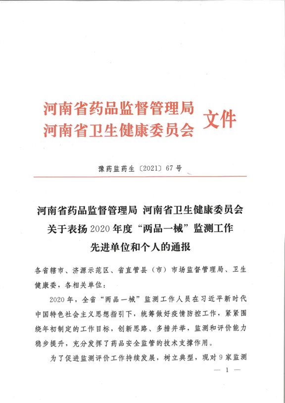 7月13日,漯河市市场监督管理局召开全市2021年度“两品一械”监测推进会议,对2021年度药品、医疗器械和化妆品不良反应监测与报告工作中成绩突出的先进单位和个人进行表彰。漯河市中心医院荣获河南省“两品一械”先进单位,漯河市中心医院药学部张锐荣获河南省“两品一械”监测工作先进个人荣誉称号。