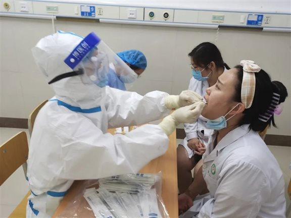 从8月1日下午14点30分到19点,不到五个小时的时间内,通过临床科室自行采样,非临床科室集中采样结合的形式,医院实现了全部在院人员全覆盖采样。